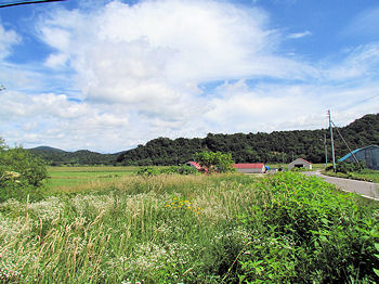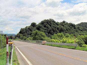 道北旅行の三日目、歌内チャシのあと国道40号線を南下しながら戻り、佐久駅の近くで天塩川沿いに40号線が西に大きく曲がる辺りにオフイチャシがあります。丁度天塩川とその支流・安平志内川にはさまれた舌状丘陵の先端部にチャシがあり、その丘陵を横切るように弧状壕があります。