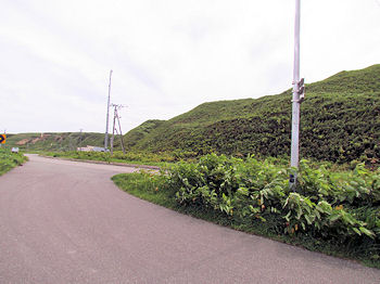 道北旅行の二日目、ポンチャシュナイチャシのあと再び国道238号線を宗谷岬方面へ向かいました。東へ1kmほど進むと宗谷海峡に面する海岸段丘、舌状丘陵の先端部に泊岸1号・2号チャシがあります。