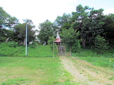 オホーツク旅行一日目、鹿ノ子ダムの後は置戸のつつじが丘チャシへと向かいました。ここは現在勝山神社になっており、神社の社殿から左側の方を見て見ましたが何も見つけられず、社殿の右の方を見て回ると写真2の置戸郷土史研究会が建てた「つつじが丘チャシの跡」という立派な碑がありました。周囲を見て回りましたが遺構らしいものはみつけることができませんでした。