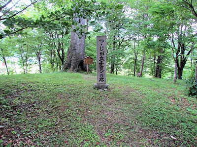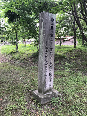 | 写真5:チャシ主体部? | 写真6:チャシの碑の裏側 「安山岩の孤立せる残丘にして天然の城砦である」と書かれています。 |