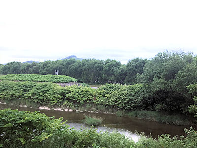 写真4:湧別川の橋のたもとからチャシ方面を望む |