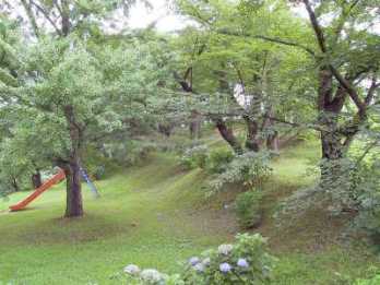 そこからもうしばらく下ると、公園の入口に着きましたので、それほど大きな城跡ではないなあと思いましたが、周囲に12の楯があることを考えるとそれらとの連繋で防御を固めていたのかなと感じました。